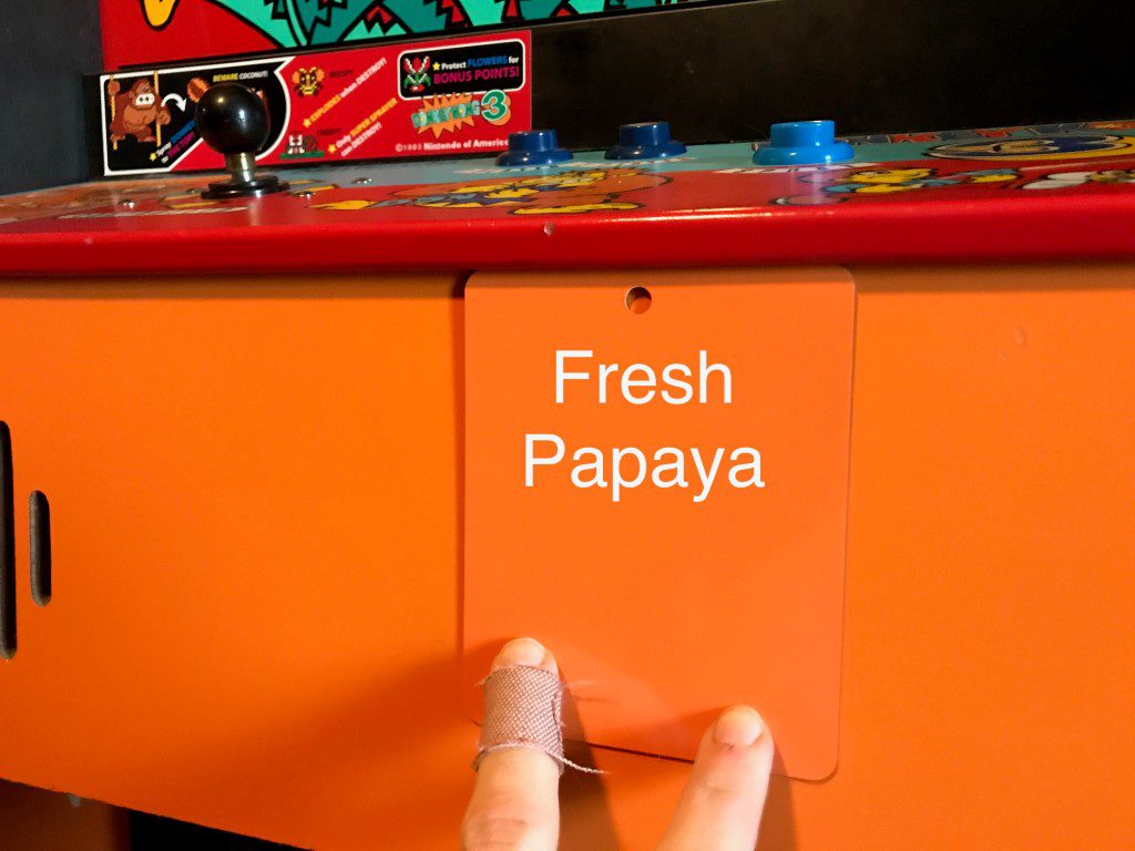 Ever since we took the black veil off the cabinet at SFGE, much has been discussed around the restoration of the US cabinet (Serial #00013) and the decision to laminate vs. paint. The biggest point of consideration for me with the cabinet was that I wanted to get the closest approximation to the factory Nintendo finish as possible. Going the paint route would have necessitated many (many) rounds of sanding, painting, sanding, etc. and I still wouldn’t have gotten to the finish I wanted since I don’t have HVLP equipment, automotive-grade paint and the skill to apply either one. With that, re-laminating seemed to be the best option given that I could get a factory-perfect finish in one motion. The next hurdle would be finding that one, special laminate that had the proper finish and thickness so that it could be laid over the existing cabinet sides/front and work with the t-molding for that ‘crisp’ look we are all after with our restorations.